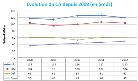 Autre point commun à ces trois de ces quatre fournisseurs, une absence patente de croissance du chiffre d’affaires ces cinq dernières années du chiffre d’affaires et ce malgré les acquisitions.