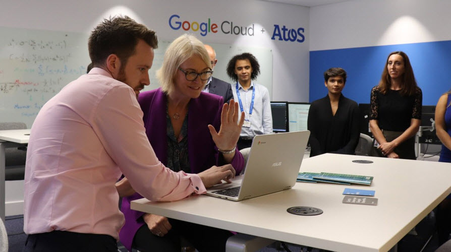 Atos et Google Cloud lancent leur premier laboratoire d’Intelligence Artificielle à Londres et recevaient à cette occasion la visite de la ministre anglaise des des industries créatives et digitales, Margot James.