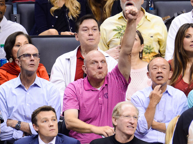 Celebrities At The Los Angeles Clippers GameSteve Balmer ( photo ci dessus lors d’un match à Seattle)  a battu sur le fil , le groupe du milliardaire David Geffen crée sous l’impulsion du PDG d’Oracle ,Larry Ellison qui proposait 1,5 milliards de dollars. Ces sommes peuvent paraitre exceptionnelles mais ce sont plusieurs centaines de millions en droits TV qui sont redistribués aux équipes chaque année. Dans l’équipe d’Ellison et Geffen , on trouvait aussi la présentatrice vedette de la TV ; Oprah Winfrey; les cadres de Guggenheim Todd Boehly et Mark Walter; La veuve de Steve Jobs, Laurene Jobs; l’ex-femme du spécialiste des casinos de las Vegas , Steve Wynn, Elaine Wynn; et  le cofondateur de  la firme Beats   Jimmy Iovine. qui vient de remplir ses valises  de dollars après la vente de son entreprise à Apple.