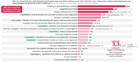Deux tendances méritent une attention particulière. Les attaques DDoS (21 %) prennent une dimension nouvelle : désormais hyper-volumétriques, elles s’inscrivent de plus en plus dans des stratégies hybrides liées au contexte géopolitique tendu. Quant aux deepfakes, ils font leur entrée dans le baromètre avec 5 % des attaques, un signal faible qui inquiète les professionnels : cette technologie amplifie les stratagèmes existants, notamment l’arnaque au président.