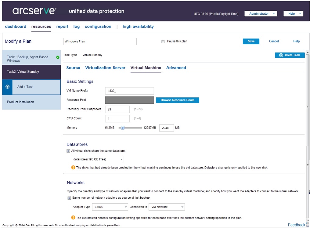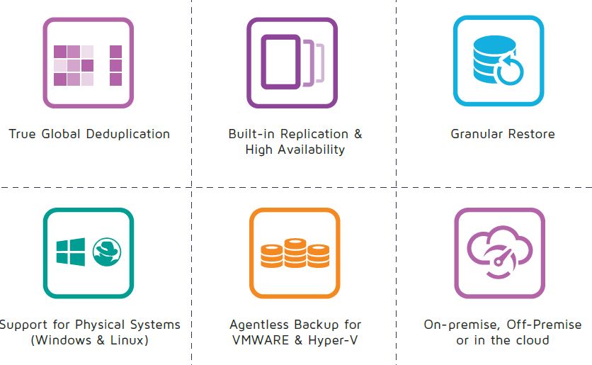 Comme chez Apple, la version UDP inclut la possibilité de mettre en place des plans de protection selon l’objectif de temps de récupération et des points de récupération obligatoire à heures fixes. Il effectue classiquement le back-up de serveurs physiques et virtuels et propose des politiques déduplication de données source. La réplication s’effectue au niveau du bloc, tandis que chiffrement et déchiffrage AES 256 bits s’effectuent en continu.