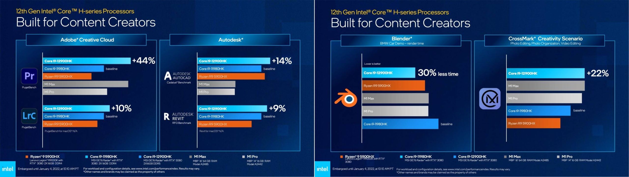 Les performances ici annoncées ont été mesurées par Intel. Il faut donc les prendre avec des pincettes et ces benchmarks devront être vérifiés sur des machines réelles par des laboratoires indépendants. Néanmoins, elles montrent que non seulement Intel a rattrapé son retard sur le M1 d’Apple mais reprend même l’avantage (tout du moins en attendant qu’Apple dévoile son M2).
