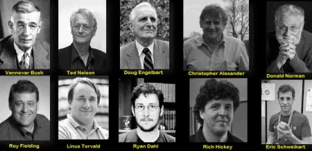 Cette vision a directement influencé des pionniers de l’informatique moderne tels que Douglas Engelbart (ci-dessous) et a posé les fondations de l’hypertexte à l’origine du World Wide Web. L’idée était de décrire comment les liens fonctionnent dans un réseau.