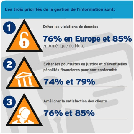 L’indice 2014 de maturité de la gestion des risques pour l’information (Information Risk Maturity Index) examine comment les grandes entreprises et celles de taille moyenne, en Europe et en Amérique du Nord, protègent leurs informations et se demande quels avantages économiques elles en retirent. Près des trois quarts des entreprises interrogées considèrent l’information comme un actif économique, pourtant 35 % seulement en moyenne analysent les données pour extraire de la valeur de leurs informations.