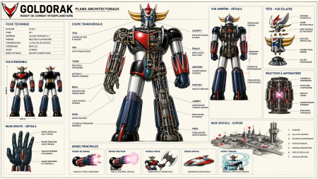 Le prompt : « Regénère les plans architecturaux de Goldorak au format 16:9 »