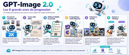 OpenAI remet un gros coup d’accélérateur sur la génération d’images. Plus précis, plus discipliné et nettement plus solide sur les workflows réels, GPT-Image 2.0 transforme enfin l’IA visuelle en vrai outil de prod. Une nouvelle version plutôt bluffante par la qualité de ses rendus !
