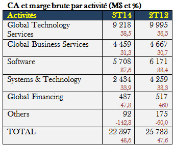 « Nous sommes désappointés de nos résultats » a déclaré Ginni Rometty, CEO d’IBM en commentant les résultats du 3e trimestre de l’exercice 2014. Il est vrai que Big Blue a connu de meilleurs moments. Mais gardant le moral au beau fixe, la CEO de la compagnie continuait sur un mode positif : « nous avons réalisé de bons résultats dans les domaines stratégiques que sont le cloud, l’analytics, la sécurité, le mobile ». Le problème est que ces activités ne représentent pas encore un part suffisamment importante pour renverser la tendance.