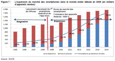 En 2004, Nokia, RIM et Motorola concentraient déjà 70,8 % du marché en termes d’appareils expédiés. À la fin de l’année 2015, les 3 plus grands fabricants d’appareils concentraient « seulement » 46,6 % du marché.