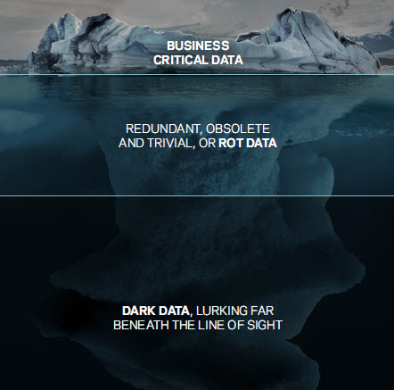 – Données obscures (« dark data ») : il s’agit de données dont la pertinence n’a pas été identifiée. On y retrouve des données stratégiques, des données redondantes, obsolètes, inutiles et surtout des données illégales ou non-conformes, représentant une source de risque au cœur même des réseaux informatiques.