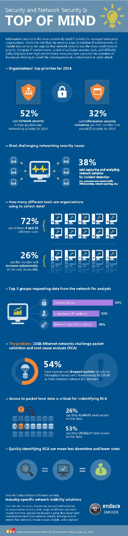 L’étude réalisée Enterprise Strategy Group (ESG) et commanditée par Emulex confirme une augmentation de la complexité des réseaux actuels due à la consolidation des data centers, la virtualisation des serveurs / cloud privés, la virtualisation des couches de calculs, les nouvelles architectures applicatives et le passage au 10Gb Ethernet (10 GbE) ou à des débits plus élevés.