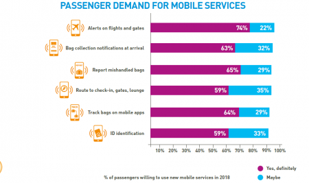 Les trois quarts des passagers disent qu’ils utiliseraient certainement les alertes poussées sur leur mobile celles-ci étaient disponibles. Trois des services les plus demandés ont trait au suivi statut de leurs bagages.