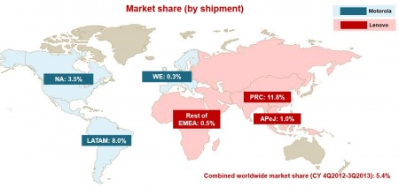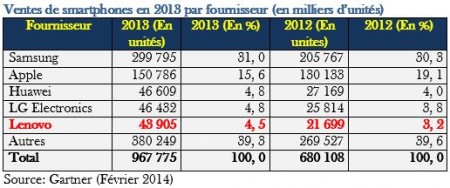 En début d’année, Lenovo procédait aussi à l’acquisition de Motorola – acheté par erreur quelques temps plus tôt par Google – et renforçait ainsi significativement sa position sur le marché des smartphones certes avec une part de marché globale encore modeste de 5,4 % mais avec de fortes ambitions. Sa stratégie dans les mobiles a été plutôt chaotique puisqu’il a vendu cette activité en 2008 pour concentrer ses efforts sur les PC avant de la racheter un an plus tard avec des objectifs de long terme. En 2012, Lenovo investissait quelque 800 M$ pour la construction d’une unité de fabrication et de R&D à Wuhan en Chine.