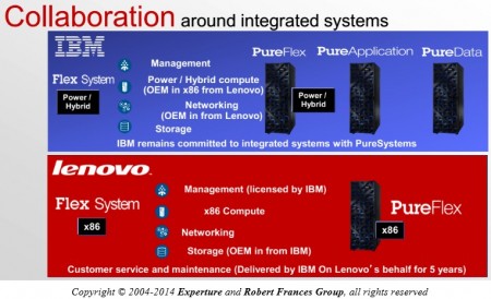 Selon les termes de l’accord qui vient d’être finalisé Lenovo acquiert les System x, serveur BladeCenter et Flex System et les switches, les systèmes intégrés Flex, les serveurs NeXtScale et iDataPlex et les logiciels associés, les composants réseaux pour les serveurs lames et les opérations de maintenance ainsi que tous les brevets associés. IBM garde ses systèmes System z – ses systèmes historiques – les Power Systems, les systèmes de stockage, les serveurs Flex basés sur les microprocesseurs Power et les appliances Pure Applications et PureData.