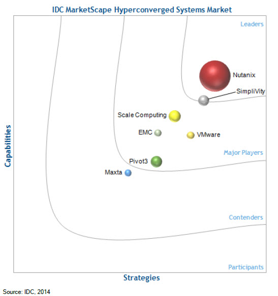 Dans ce nouveau marché qui ne remplacera pas celui des serveurs traditionnels du jour au lendemain, les trois fournisseurs en pointe sont des startups qui se sont lancés spécifiquement sur ce marché. Nutanix a été créé en 2009 par une équipe d’ingénieurs issus des équipes R&D de Google, rejoints par de nombreux talents issus des équipes techniques d’Amazon, Facebook, et autres sociétés dans le domaine de la virtualisation et de l’optimisation des performances IT.