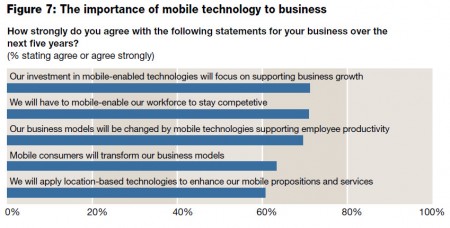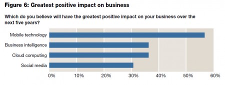De ces quatre forces qui transforment radicalement la société, les entreprises et toutes les activités humaines, le mobile est la technologie qui est citée assez largement en premier comme facteur ayant un impact positif sur l’entreprise dans les 5 ans à venir. Il est vrai qu’avec le mobile nous entrons dans une ère qui change radicalement notre rapport au monde et aux autres : nous sommes et devons être connectés en permanence.
