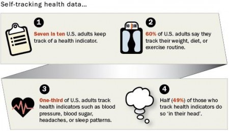 En attendant, les objets connectés et les applications qui vont avec connaissent un développement explosif. Une étude de ABI Research estime que d’ici 2018, le nombre de terminaux connectés et destinés à cette activité atteindra 485 millions, dont la plupart auront une activité de suivi de l’individu et de ses actions ; et ce chiffre n’inclut pas le nombre de smartphones qui intègrent de telles applis et dont le volume dépasse les milliards d’unités. Selon l’étude Tracking for Health publiée par l’institut Pew Research Center, 60 % des Américains suivent régulièrement leur poids, leur alimentation ou leur activité physique. Il semble que plus aucune activité humaine qui échapperait à cette nouvelle mode d’autant plus que les technologies le permettent aisément. Les chiffres de téléchargement d’applications telles que Runkeeper, Runtastic, MapMyRun, Fitbit et bien d’autres se mesure en millions, voire dizaines de millions.