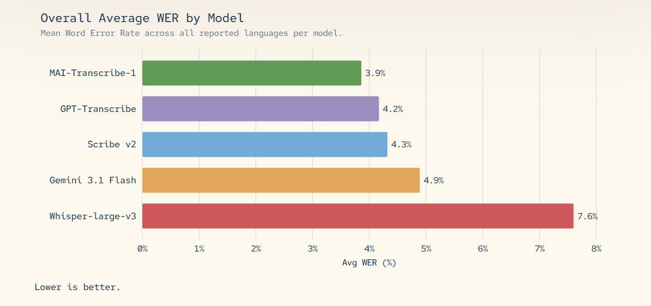 Concrètement, MAI-Transcribe-1 et MAI-Voice-1 forment ensemble un pipeline audio complet qui, combiné à un LLM au choix du client, tourne intégralement sur l’infrastructure Microsoft sans autre dépendance technologique. C’est là que la stratégie prend tout son sens : Microsoft n’a pas besoin de battre OpenAI sur chaque benchmark. Il lui suffit d’être suffisamment compétitif pour que les entreprises déjà clientes d’Azure choisissent l’option intégrée plutôt que l’alternative tierce.