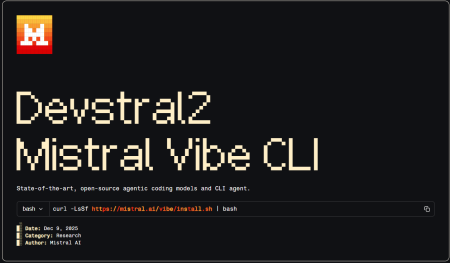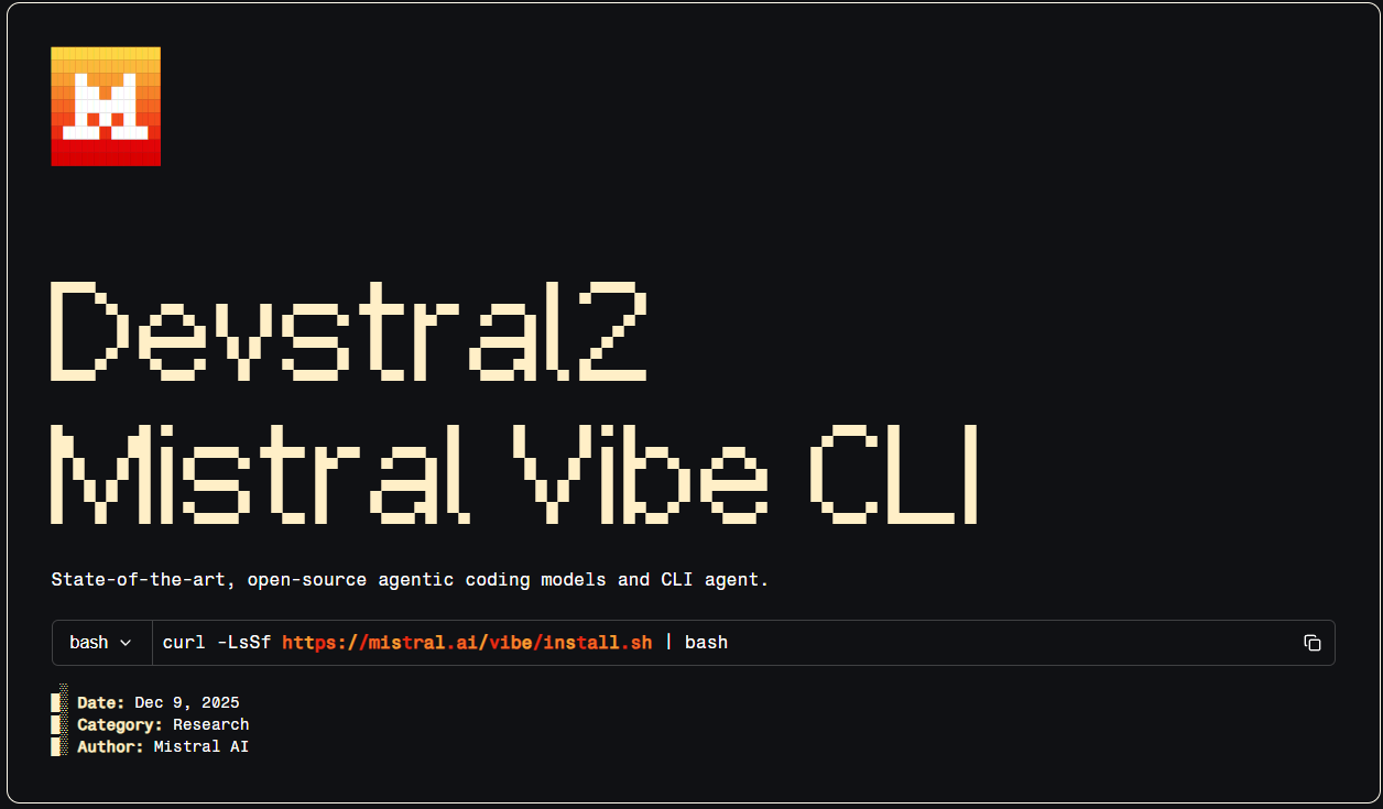 Cette semaine, Mistral peaufine son arsenal et lance une famille de modèles spécialisés « Devstral 2 » et son nouvel outil « Mistral Vibe CLI ».
