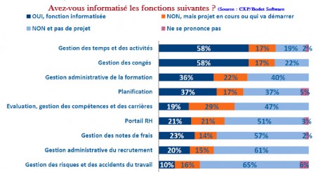 L’édition 2014 du Baromètre RH Bodet Software / CXP[1] met en lumière trois domaines qui sortent du loten matière d’informatisation :