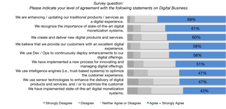 Au premier des initiatives citées par les personnes interrogées par le cabinet Saugatuck est « l’augmentation numérique » liée aux produits et services et l’amélioration de l’expérience client.
