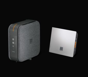Cette Livebox 6 est plutôt pensée pour une installation à la verticale avec ses finitions en tissu de chaque côté rappelant le look de bien des enceintes autonomes. Elle est dotée d’un écran tactile en technologie e-Ink pour limiter la consommation d’énergie. On saluera cependant la volonté de réintégrer un écran (la Livebox 5 se limitait à un jeu de 3 LEDs) basse consommation qui simplifie grandement la prise en main et l’installation (notamment grâce à l’affichage de QR-Codes) mais aussi les diagnostics, la gestion du WiFi ou encore les tests de débit.