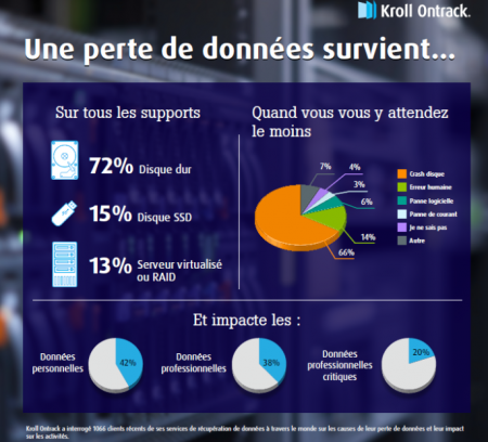 Les pannes de disque dur ont plus que doublé depuis les quatre dernières années et s’imposent comme la cause la plus courante de perte de données, d’après une récente étude réalisée sur des clients par Kroll Ontrack, leader sur le marché de la récupération de données, de la recherche d’informations et de preuves informatiques.