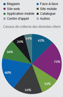 En moyenne, elles utilisent plus de 3 canaux pour collecter des données Contact (clients ou prospects). Sachant que les entreprises multinationales utilisent davantage de canaux que les entreprises qui exercent leurs activités dans un seul pays. Les sites web constituent le canal le plus prisé, le mobile gagne du terrain. Aujourd’hui, la moitié des entreprises obtiennent les données Contact client par le biais d’applications mobiles. Côté diffusion, le canal le mieux apprécié est le mail, suivi par les réseaux sociaux et les SMS.