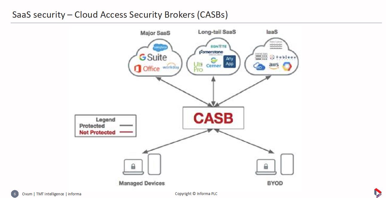 The joy, and the temptation, of SaaS is that it was so easy to sign up for – the IT department does not even need to know about it – hence the whole notion of shadow IT and the rise of Cloud Access Security Brokers (CASB) that sit between the users and their services – Fig 2. CASB was the first security response as it were to cloud adoption but: “A lot of the CASB guys have been acquired by somebody else and are now disappeared into the belly of much larger security companies with big broad portfolios”.