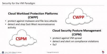 CSPM is essentially a compliance function. It’s so easy now to spin up another instance either in the developer community or the actual production environment, that all of a sudden you’ve got another 50 VMs that security didn’t know about. So CSPM technology monitors and manages the spread of VMs to ensure compliance with company policies.