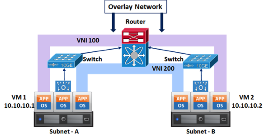 Il existe actuellement deux façons de construire des réseaux overlay qui ont été soumis à l’IETF (Internet Engineering Task Force) : le NVGRE (Network Virtualization using Generic Routing Encapsulation), soutenu par Microsoft et VXLAN (Virtual eXtensible Local Area Networks), soutenu par VMware. Ces deux standards sont conçus pour permettre la migration des machines virtuelles et ainsi garantir un déploiement à grande échelle dans le cloud :