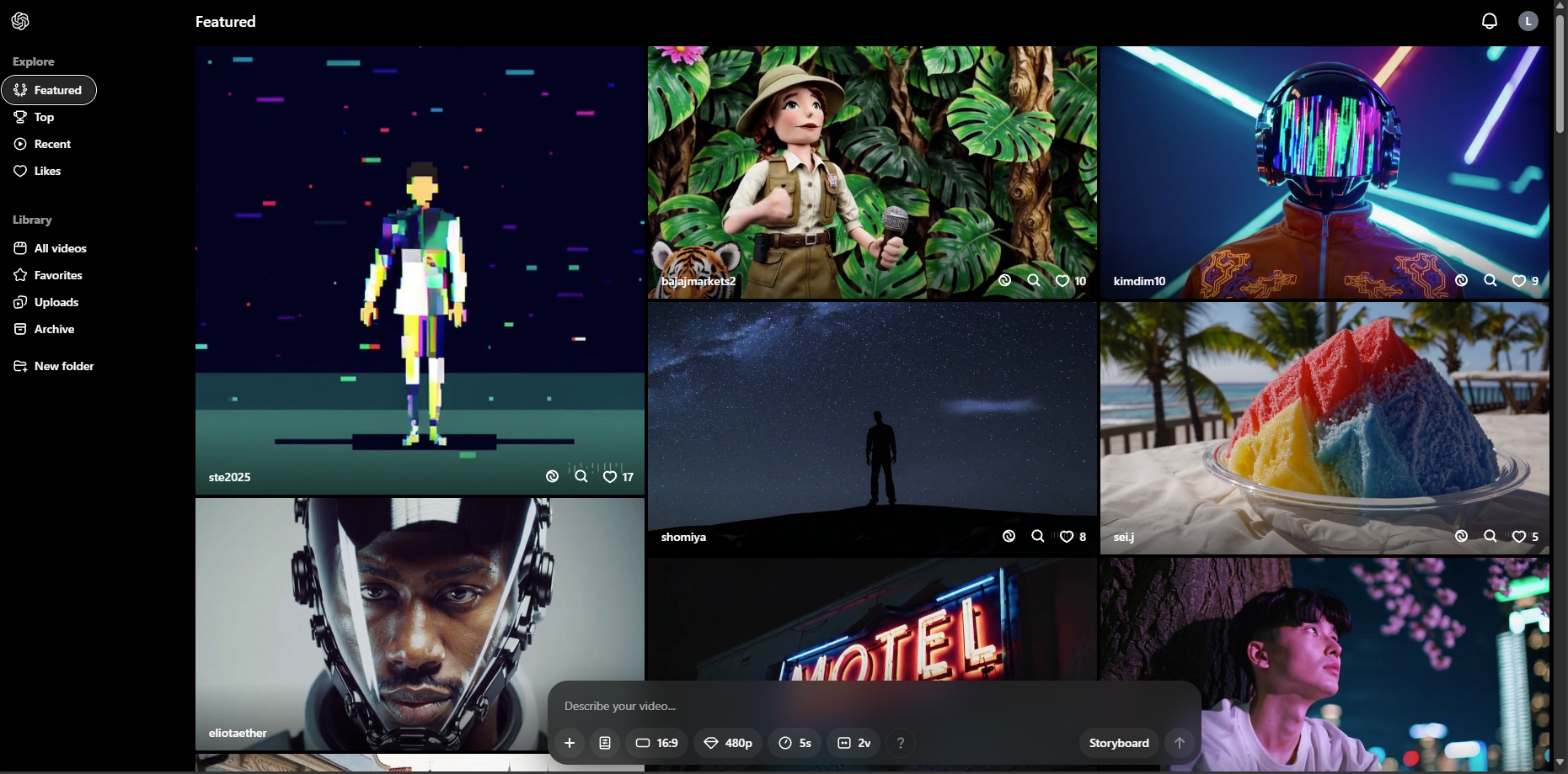 Une fois connecté, les utilisateurs peuvent consulter une bibliothèque d’exemples très parlants, générer des vidéos en saisissant des descriptions textuelles détaillées ou en téléchargeant des images ou des vidéos à modifier. Sora propose également des fonctionnalités telles que « Remix » pour ajuster les vidéos générées, « Storyboard » pour organiser des séquences sur une chronologie, et « Loop » pour créer des vidéos en boucle sans interruption perceptible.