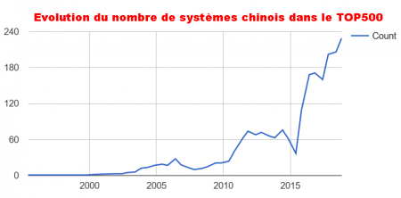 Il y a seulement dix ans, la Chine n’était que la sixième puissance en matière de supercalculateurs. En deux ans seulement, elle est passée à la deuxième place derrière les Etats-Unis. Du côté des fabricants, les quatre constructeurs Lenovo, Inspur, Sugon et Huawei représentent 30,1 % de la puissance totale. La montée en puissance de la Chine a donc été très rapide, en moins d’une dizaine d’années. La performance globale de l’ensemble de la liste est passée de 1,21 exaflops il y a six mois à 1,42 exaflops correspondant à une croissance annuelle de près de 40 %.