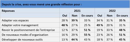 Et cette réalité semble relativement actée puisque la réduction des surfaces de bureau à son strict minimum est désormais envisagée par 62% des responsables d’entreprise en 2022 alors qu’ils n’étaient que 57% à y réfléchir en 2021.