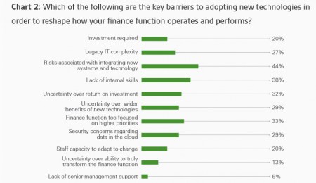 Mais cette évolution est freinée par quelques obstacles dont les deux plus importants sont les risques associés à la mise en place des nouvelles technologies et par le manque de compétences en interne.
