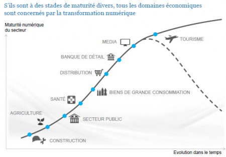 L’étude publiée par le cabinet McKinsey intitulée accélérer la mutation numérique des entreprises : un gisement de croissance et de compétitivité pour la France et dont nous donnons dans cet article quelques éléments pointe sur deux sujets qui avait déjà été mis en lumière dans d’autres enquêtes : Le potentiel de valeur important dans la mise en œuvre de la numérique, l’utilisation plus avancée des technologies tant par les particuliers que par les entreprises. Sur le premier point le cabinet de conseil estime que d’ici à 2020, la France pourrait accroître la part du numérique dans son PIB de 100 Md€ par an, à la condition que les entreprises accélèrent nettement leur transformation numérique. Plus largement, l’impact potentiel des technologies numériques de rupture(cloud, impression 3D, internet des objets, big data…) s’élève à près de 1 000 milliards d’euros en France d’ici à 2025, en prenant en compte la création de valeur ajoutée et le surplus de valeur dont bénéficient les consommateurs. Sur le second, d’autres études avaient déjà mis en évidence le retard des entreprises par rapport aux particuliers – qui aussi sont ses salariés – dans l’utilisation du numérique de l’information. Ce phénomène avait été rendu possible par la baisse des prix et avait reçu le nom de consumérisation de l’informatique.